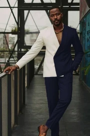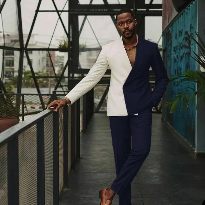 Augus Dark Navy And White Double Breasted Slim Men Suits For Prom