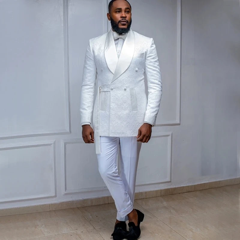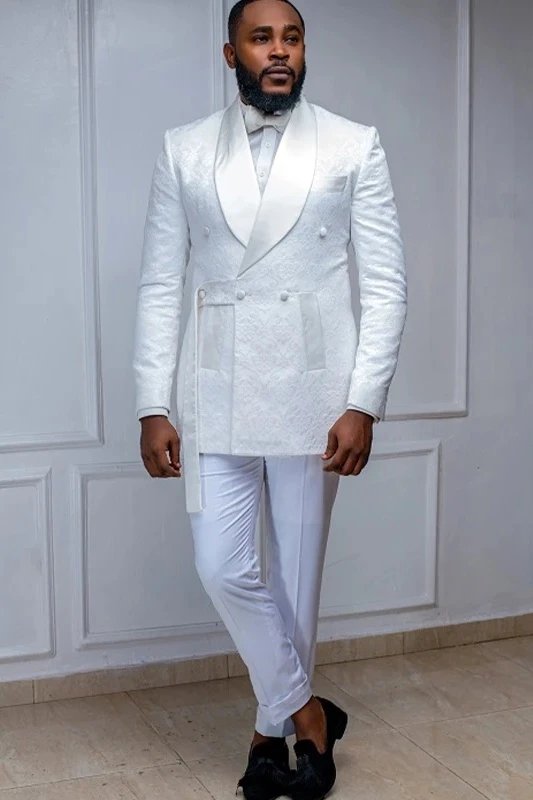 Augustine Chic White Shawl Lapel Double Breasted Men Suits