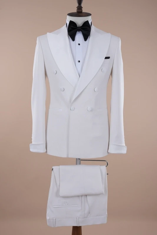 Avery Simple White Peaked Lapel Double Breasted Prom Suits