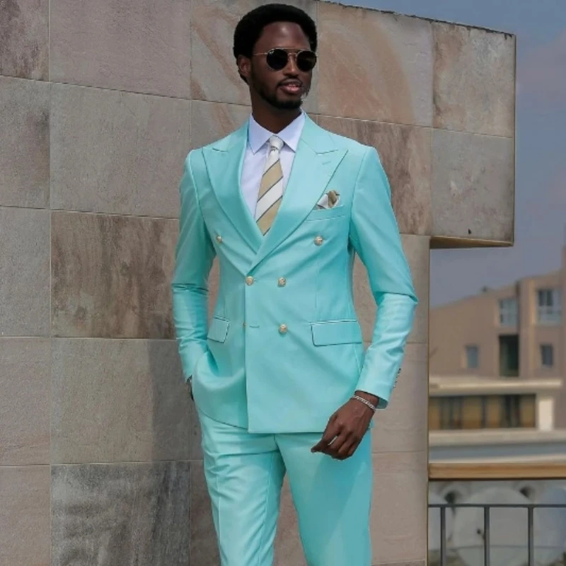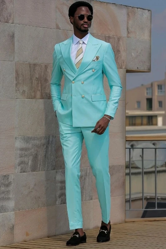 Baird Trendy Sky Blue Peaked Lapel Double Breasted Men Suits