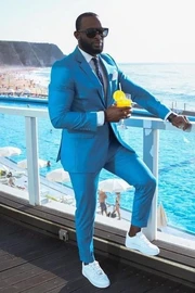 Baldwin Ocean Blue Notched Lapel Prom Men Suits