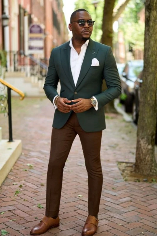 Bancroft Dark Green Peaked Lapel Prom Men Suits