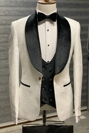 Bard Stylish Black Shawl Lapel Three Pieces Jacquard Wedding Suits