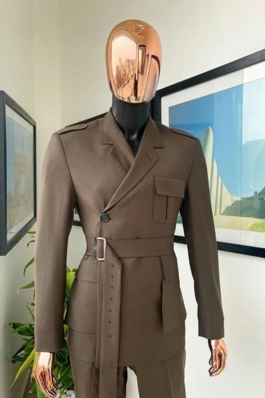 Barlow New Arrival Coffee Notched Lapel Prom Men Suits With Belt