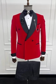 Barlow Simple Red Shawl Lapel Double Breasted Wedding Suits