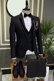 Barnett Black Shawl Lapel Three Pieces Slim Fit Wedding Suits