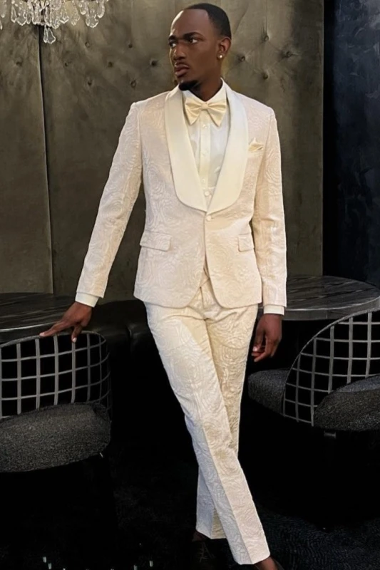 Barret Ivory Shawl Lapel Jacquard Prom Men Suits