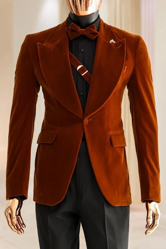 Barry Bespoke Brown Peaked Lapel Two Pieces Velvet Prom Suits