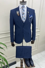 Barry Dark Blue Notched Lapel Three Pieces Close Fitting Prom Suits