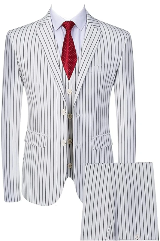 Bart Simple White Notched Lapel Three Pieces Striped Suits For Business