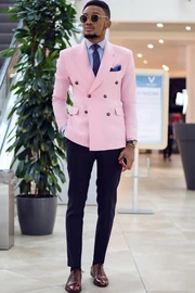 Bartholomew Pink Peaked Lapel Double Breasted Close Fitting Men Suits