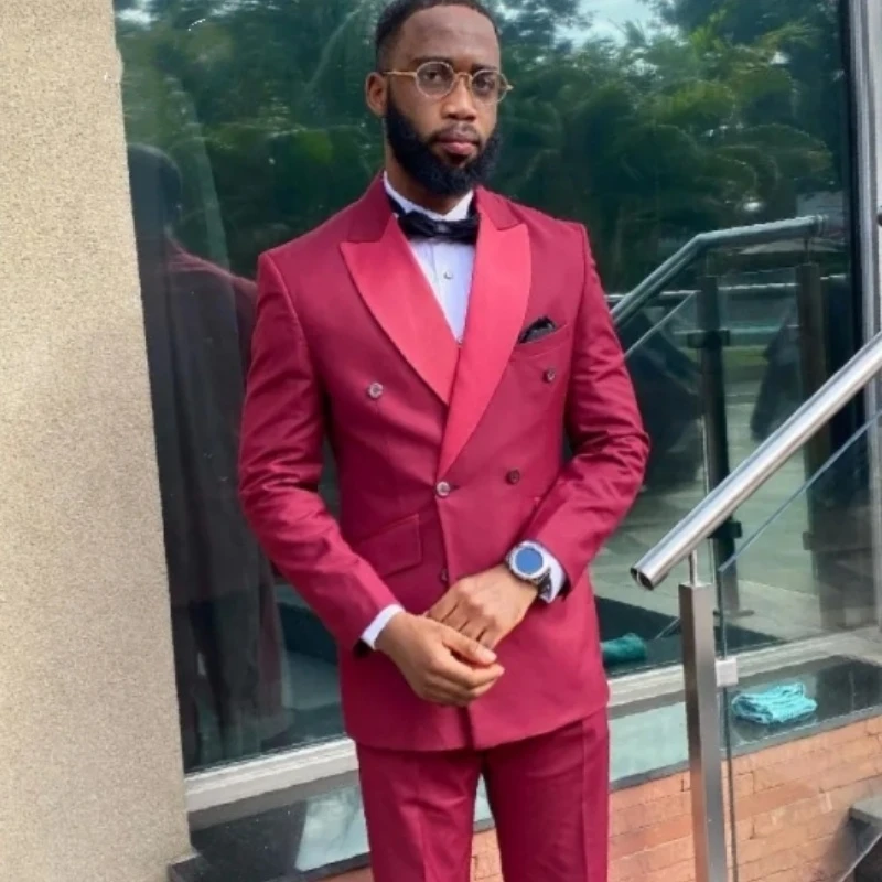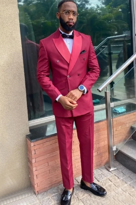 Barton Fuchsia Peaked Lapel Double Breasted Slim Fit Men Suits