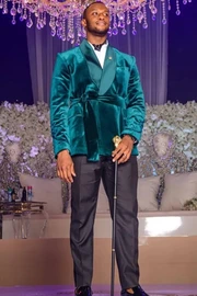 Basil Chic Dark Green Velvet Shawl Lapel Prom Suits For Men