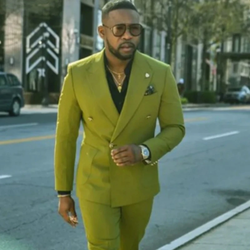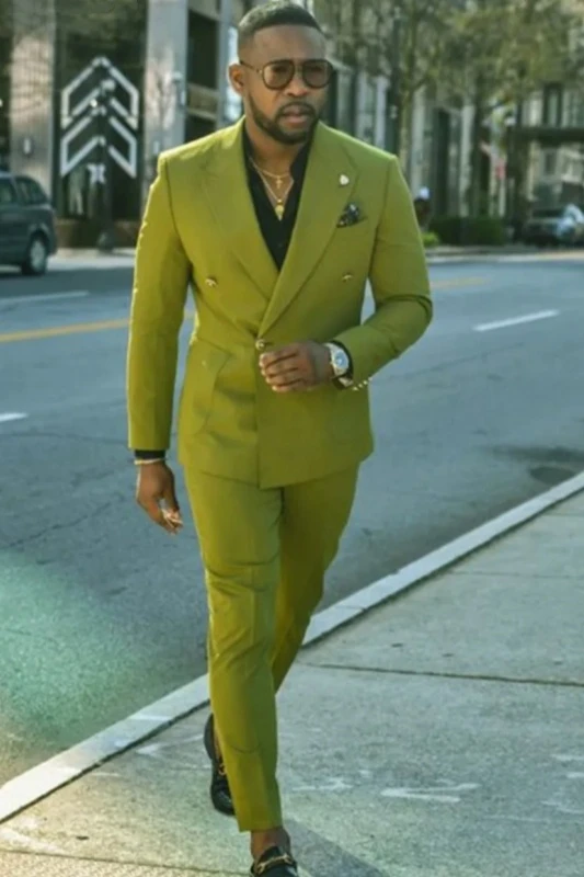 Beacher Lime Green Peaked Lapel Close Fitting Men Suits