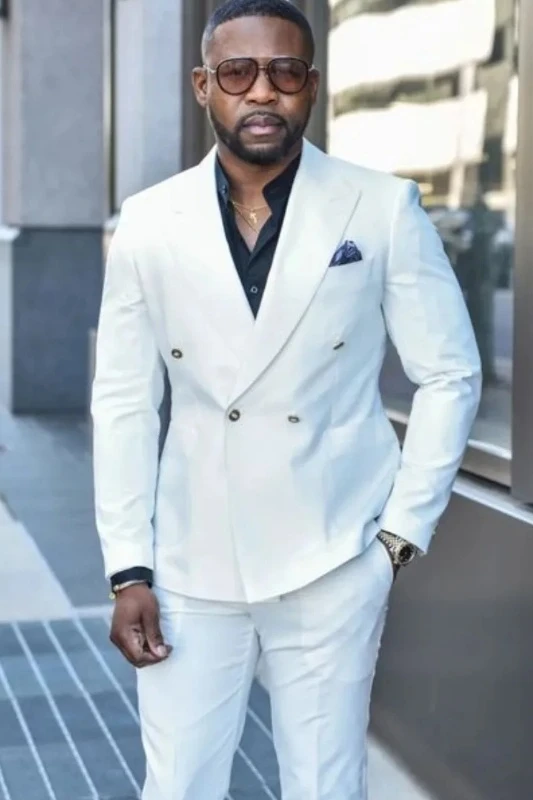 Beau White Peaked Lapel Double Breasted Men Suits For Prom