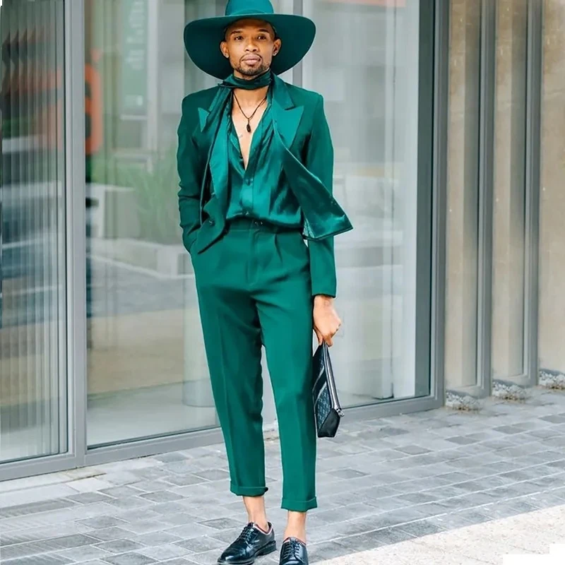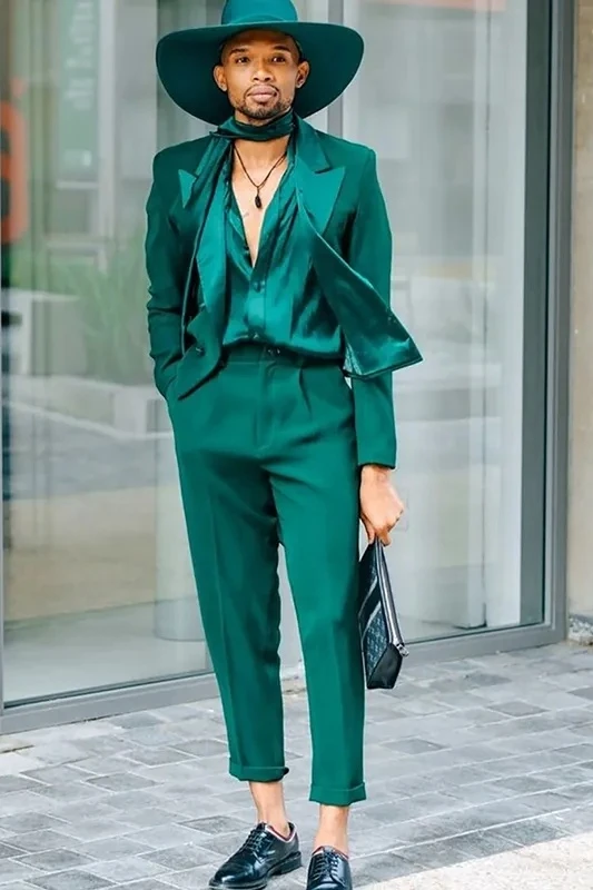 Benjamin Trendy Dark Green Peaked Lapel Prom Suits For Men
