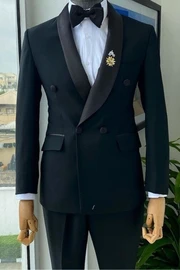 Bennett Bespoke Black Shawl Lapel Double Breasted Double Breasted Wedding Suits