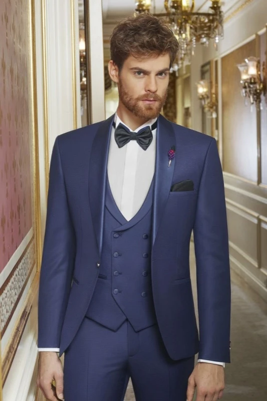 Bennett Dark Blue Shawl Lapel Three Pieces Prom Men Suits