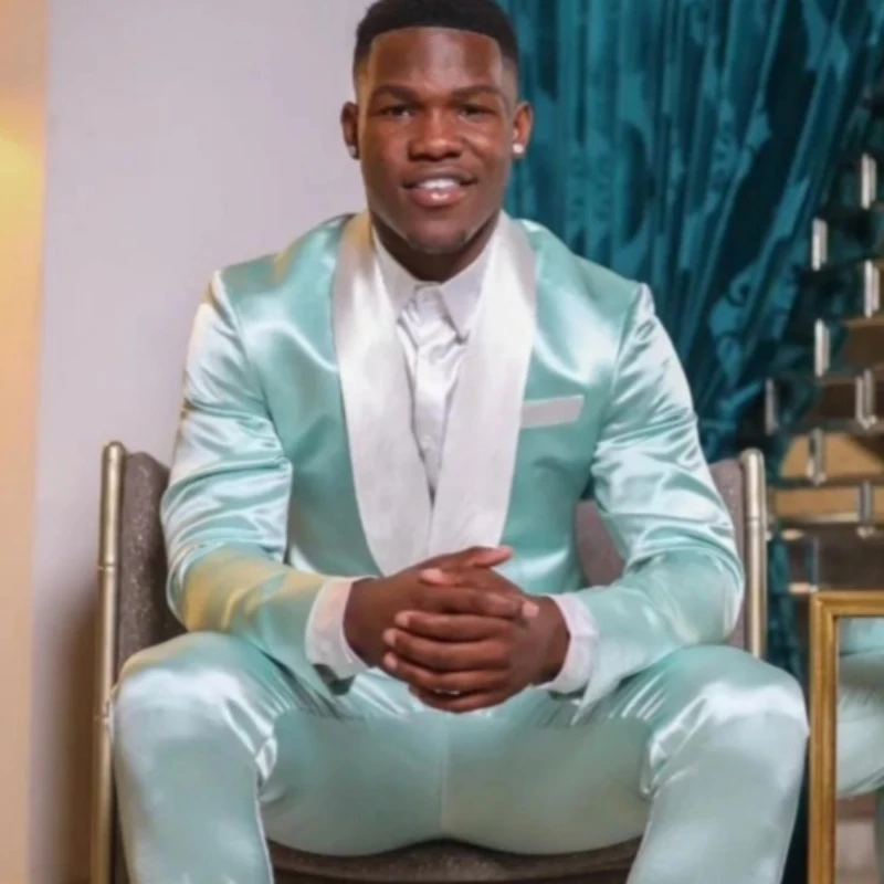 Berg Mint Satin Men Suits With White Shawl Lapel