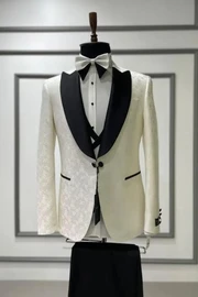 Bernard Fashion White Peaked Lapel Three Pieces Jacquard Prom Suits
