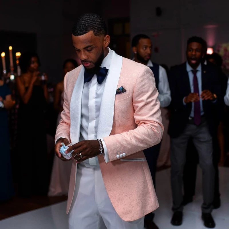 Bert Stylish Salmon Shawl Lapel Jacquard Men Suits Best Fitted Wedding