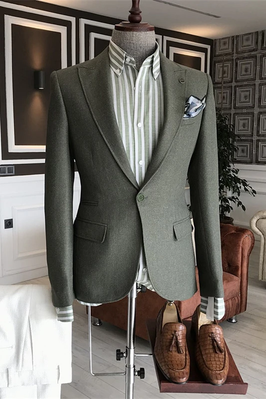Bishop Newest Dark Green Peaked Lapel Men Suits For Prom