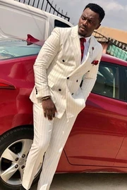 Blair White Peaked Lapel Double Breasted Striped Men Suits Best Fitted Business