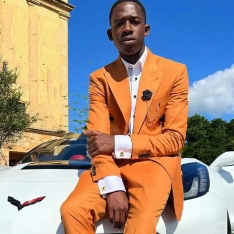 Blithe Chic Orange Peaked Lapel Slim Fit Men Suits For Prom