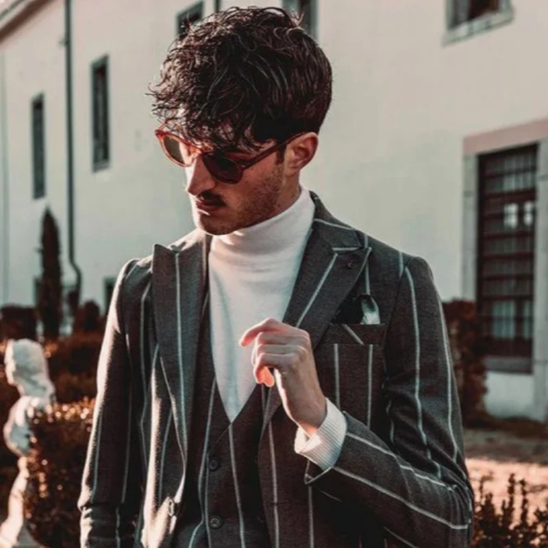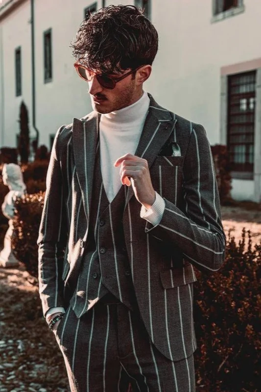 Borg Gray Peaked Lapel Striped Three Pieces Men Suits For Business