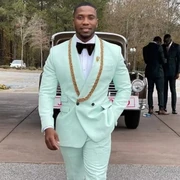 Boris Mint Chic Shawl Lapel Double Breasted Men Suits Best Fitted Wedding
