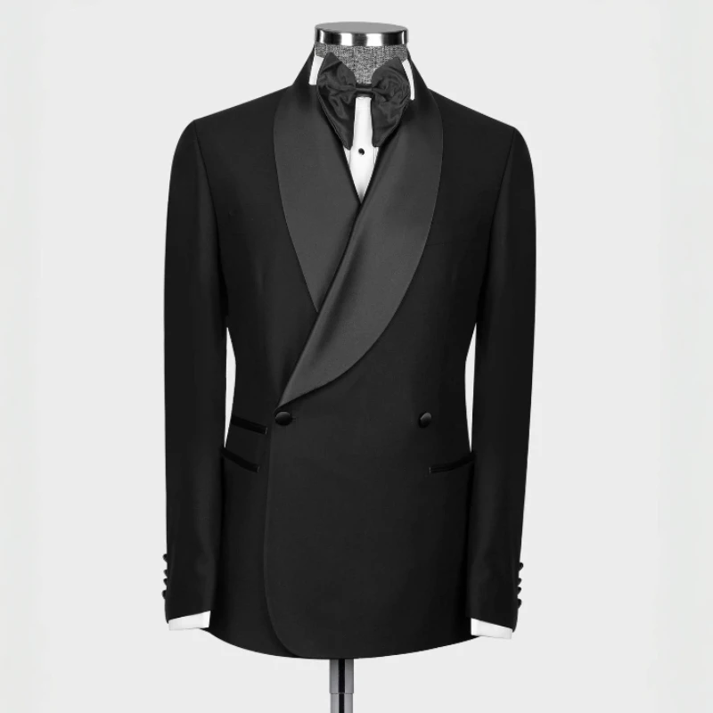 Boyd Bespoke Black Shawl Lapel Double Breasted Wedding Suits