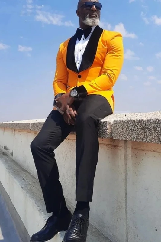 Boyd Gold Men Suits For Prom With Black Shawl Lapel