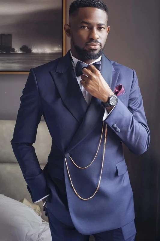 Bradley Chic Dark Navy Peaked Lapel One Button Men Suits For Prom