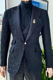 Brandon Modern Dark Navy Peaked Lapel Three Pieces Prom Suits