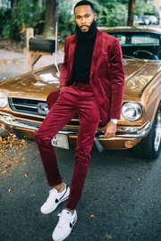 Buck Generous Burgundy Peaked Lapel Velvet Prom Suits