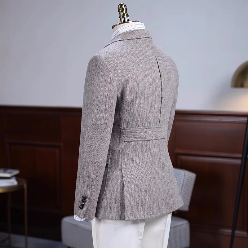 Burke Wonderful Khaki Herringbone Notched Lapel Prom Suits