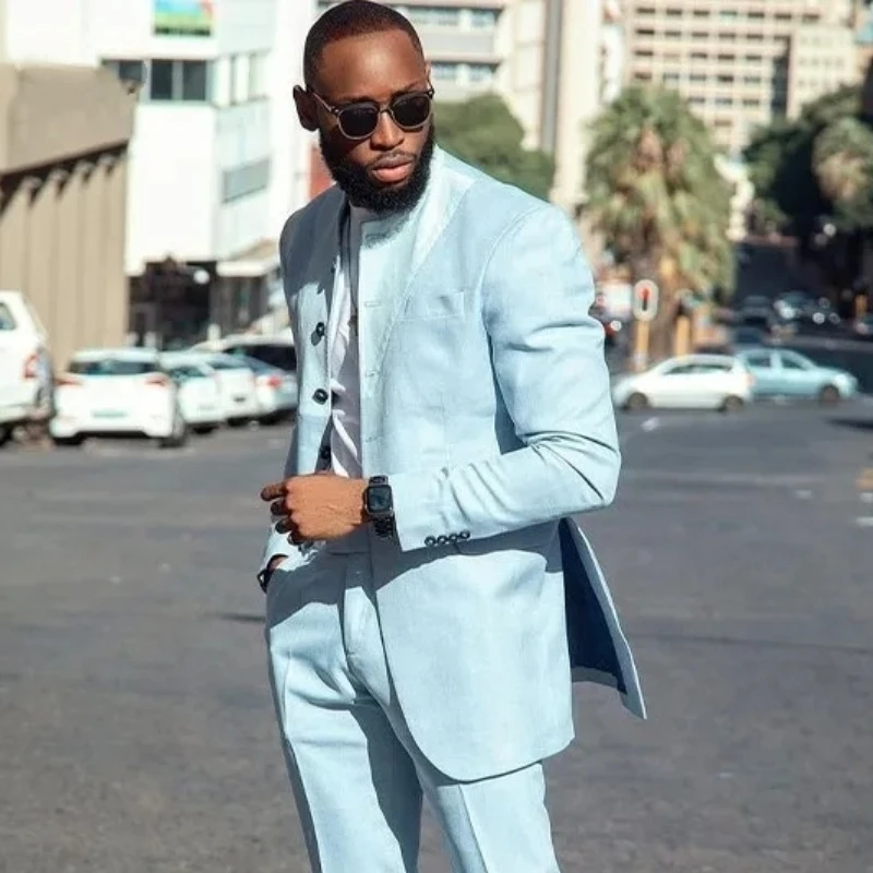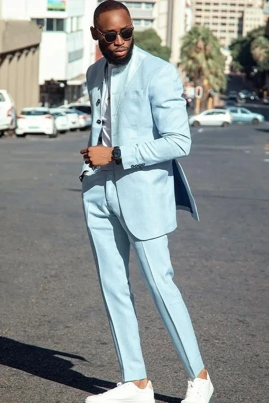 Caden Fashion Sky Blue Shawl Lapel Men Suits For Prom