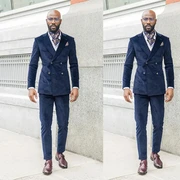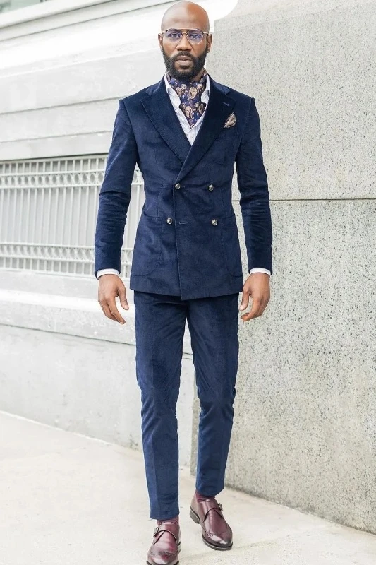 Caesar Dark Navy Velvet Notched Lapel Double Breasted Men Suits