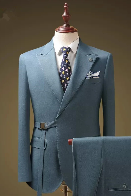 Caesar Fancy Light Blue Peaked Lapel Two Pieces Men Suits For Prom
