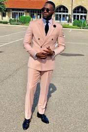 Caleb Chic Salmon Peaked Lapel Double Breasted Prom Suits