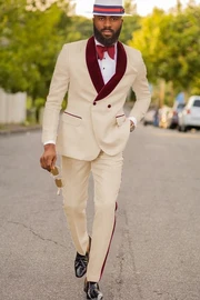 Calvin Ivory Shawl Lapel Double Breasted Wedding Suits For Men