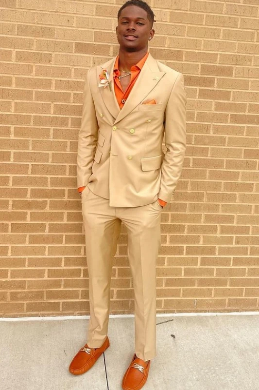 Carey New Arrival Champagne Peaked Lapel Close Fitting Prom Suits