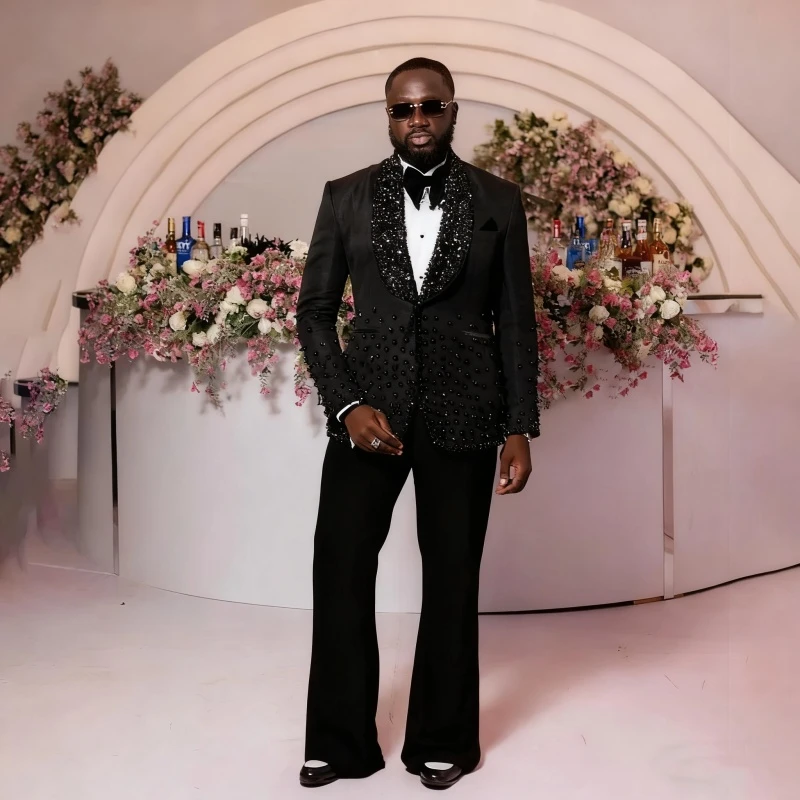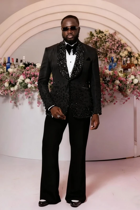 Carr Glamorous Black Beadings Shawl Lapel Best Fitted Wedding Men Suits