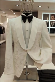 Carroll Glamorous White Shawl Lapel Two Pieces Jacquard Wedding Suits