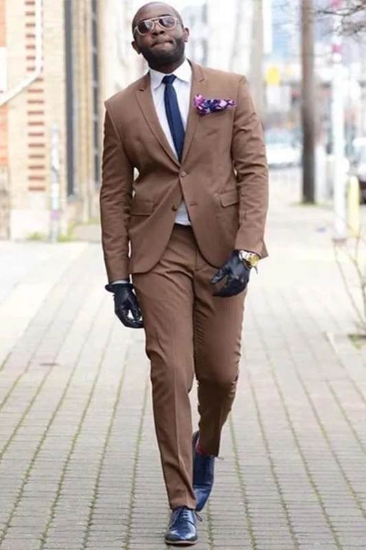 Cecil Chic Brown Peaked Lapel Two Pieces Close Fitting Prom Suits