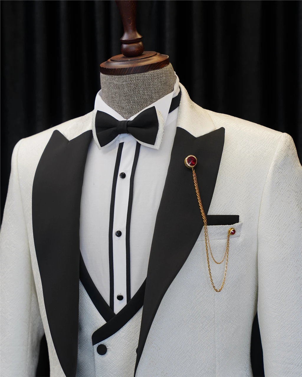 Cedric Chic White Three Pieces Jacquard Wedding Suits For Men