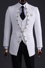 Channing Fashion White Shawl Lapel Three Pieces Plaid Men Suits
