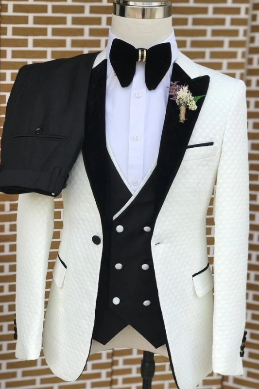 Chapman White Peaked Lapel Three Pieces Slim Fit Jacquard Prom Suits