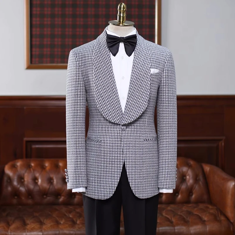 Charles Stylish Black Plaid Shawl Lapel Wedding Suits For Men