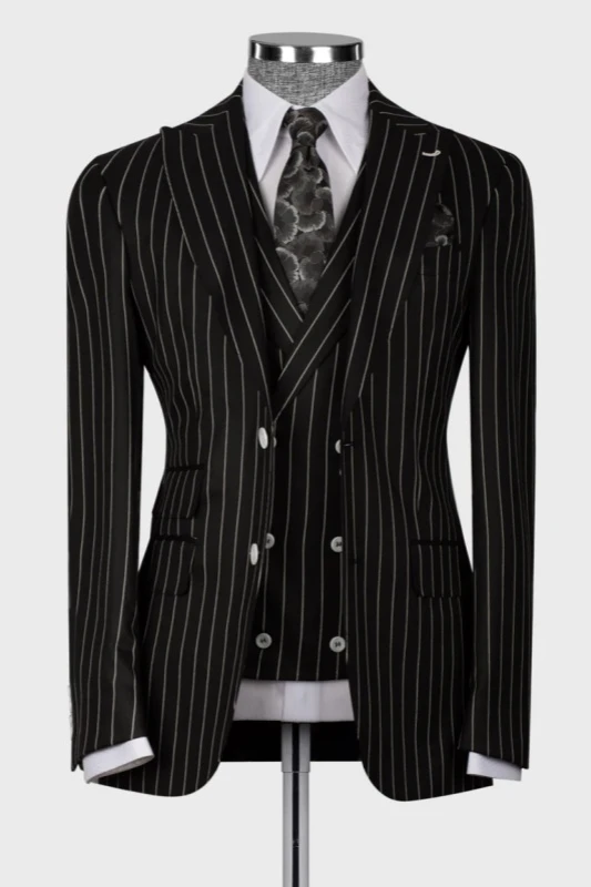 Chester Black Striped Peaked Lapel Three Pieces Business Men Suits